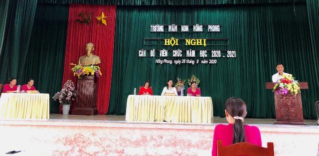 Sáng ngày 02/10/2021 (thứ bảy) trường mầm non Hồng Phong tổ chức hội nghị cán bộ, viên chức năm học 2021 - 2022.